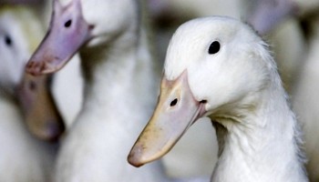 Some ducks, particularly Barbary ducks, may have the ends of their bills trimmed to try to reduce the risk of pecking damage to other birds. However, the most commonly used breed of meat duck in the UK - the Pekin - is not beak trimmed.