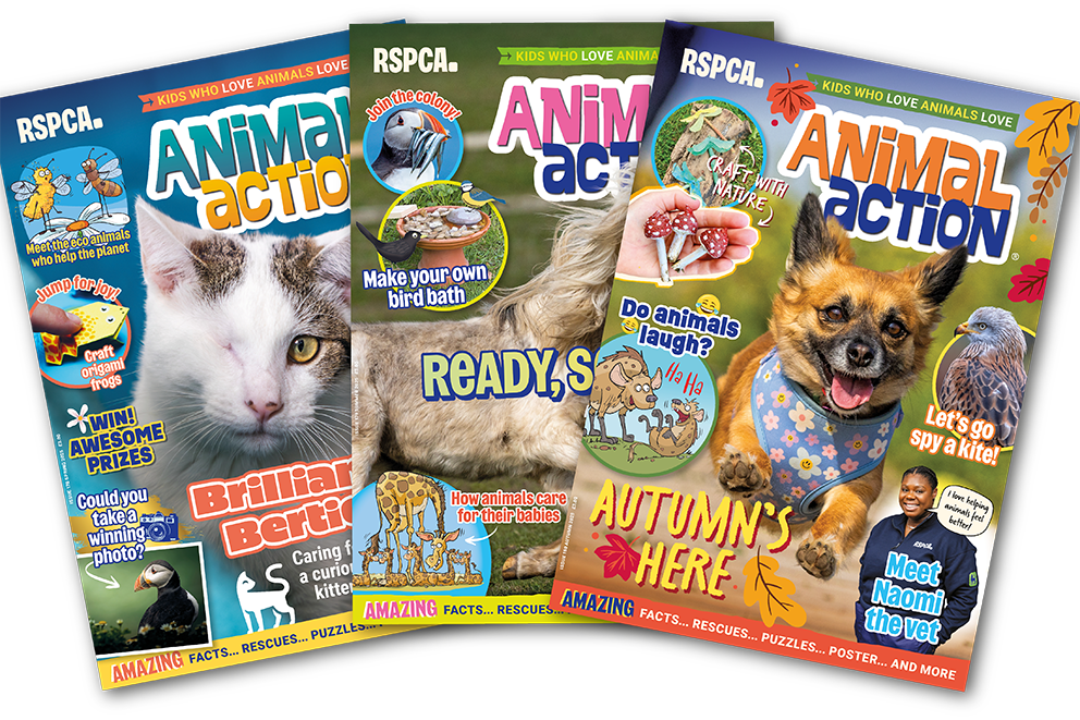 Are you under 12? Do you love learning about animals? If so, this is the magazine for you! Animal action is packed with awesome animal facts, expert pet care advice and exclusive, behind-the-scenes peeks at our state-of-the-art animal centres. You can also read heartwarming stories about the animals we rescue, rehome and release, and test yourself with our puzzles, crafts and competitions.