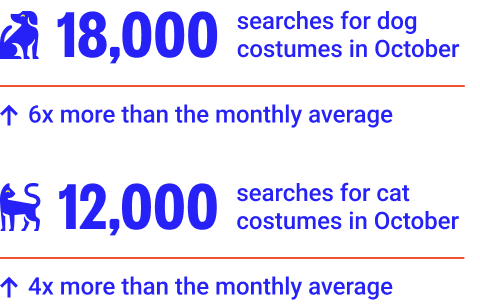 While this is a decrease of 18% in searches for cat and dog costumes from October 2022, the figure is still significant. If you scroll Instagram or TikTok around Halloween or Christmas, it can seem as though everyone with a pet is dressing them up: #cutepuppy